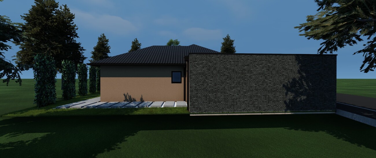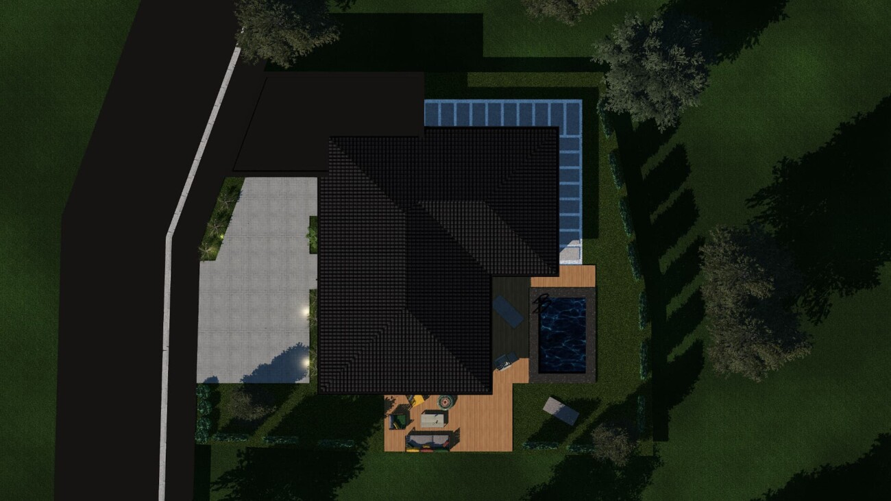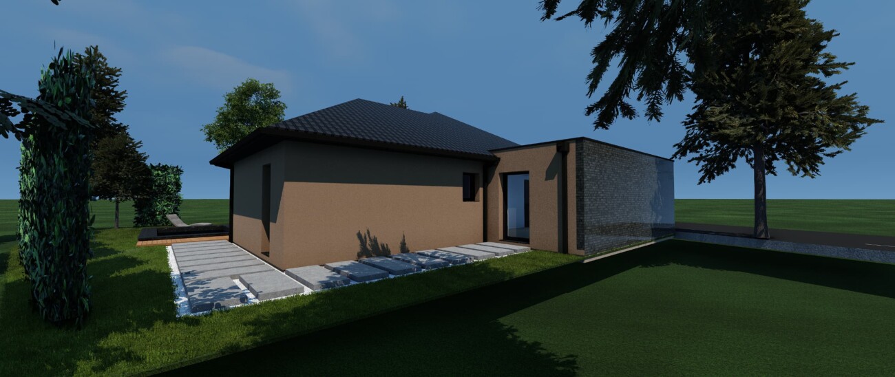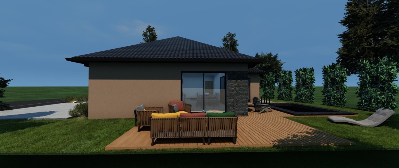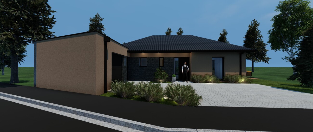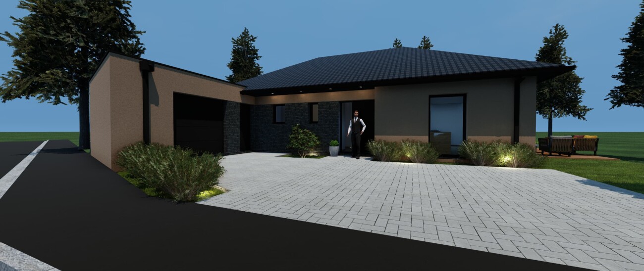 Son architecture séduisante associe des façades en enduit sobre et des parements en pierre naturelle, apportant charme et caractère à l’ensemble. La toiture à 4 pans, en tuiles noires de haute qualité, vient parfaire son allure contemporaine tout en s’intégrant harmonieusement dans tout type d’environnement.