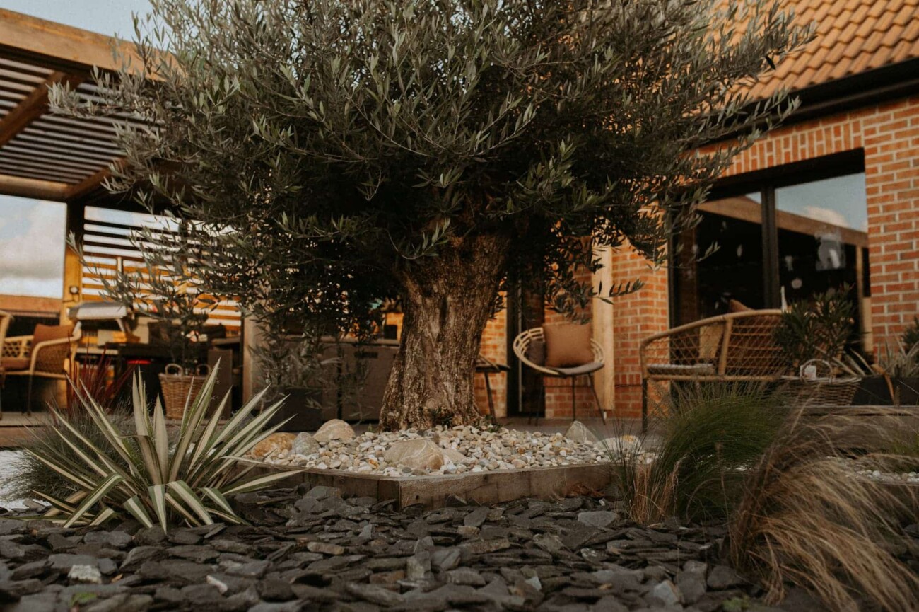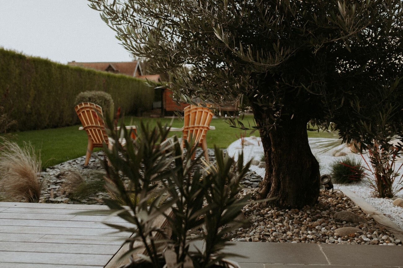 Plongez au cœur de la Méditerranée avec un jardin qui respire le soleil et la douceur de vivre. Imaginez des oliviers majestueux, des lavandes parfumées, et des romarins qui embaument l’air, le tout sublimé par des teintes chaudes de pierre naturelle et de galets. Ce jardin, à la fois authentique et intemporel, invite à la détente avec sa pergolas ombragée et son ambiance conviviale.